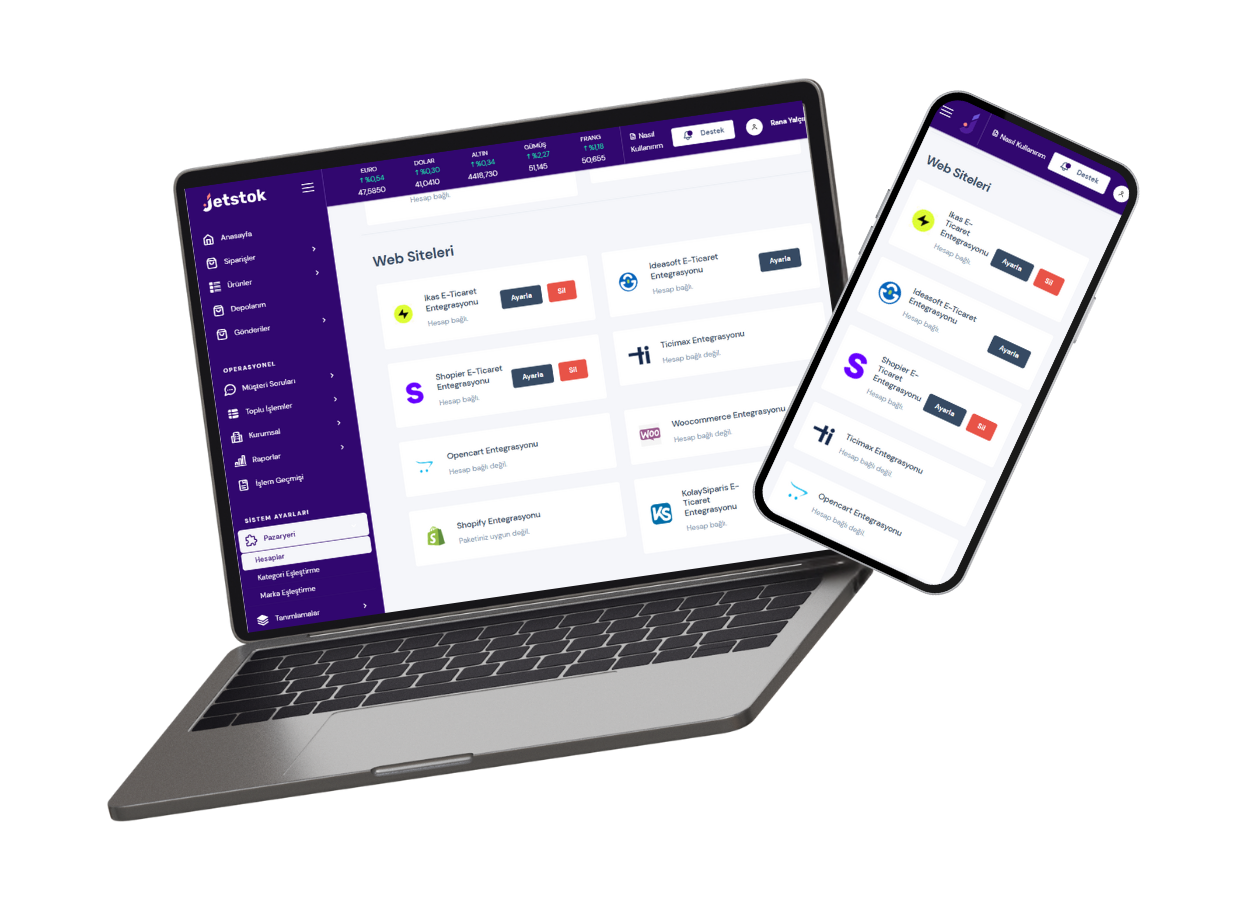 Ürünlerinizi, fiyatlarınızı ve stok bilgilerinizi Jet Stok ile anında pazar yerlerine aktarın. Trendyol, Hepsiburada, Amazon gibi kanallardaki satışlarınızı tek ekrandan takip edin, tüm dönüşümlerinizi kolayca yönetin.